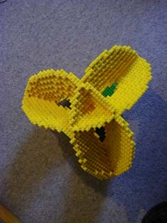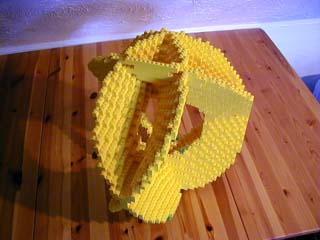 Yet another minimal surface - this is the biggest and most elaborate of all my mathematical LEGO sculptures so far. And although I still have a most of a tubful of yellow bricks left over, I only have six unused 1x3's.