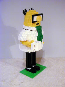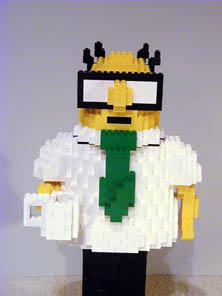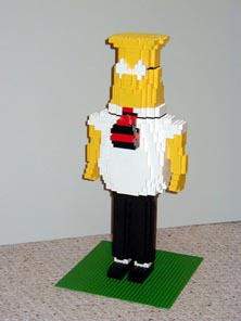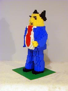 Dilbert was my first attempt at anything which could be described as LEGO sculpture. It took just over 3 1/2 hours from sitting down with a book of Dilbert cartoons and my lego bricks to finishing this (first) version. I'm not happy with the arms or the bottom of the shirt, but overall I'm pretty pleased with it.