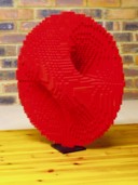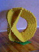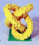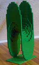 Various sizes of Mobius strip.These were the first mathematical sculptures I attempted. The big one was about my fourth (and I had to cheat a little bit with the top two layers to make it hold together). It's 37 bricks high and balances on a footprint contained in a 5x9 rectangle. It is essentially one brick thick throughout. Click on the thumbnail for more pictures and an LDRAW .DAT file... |